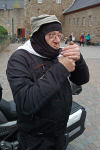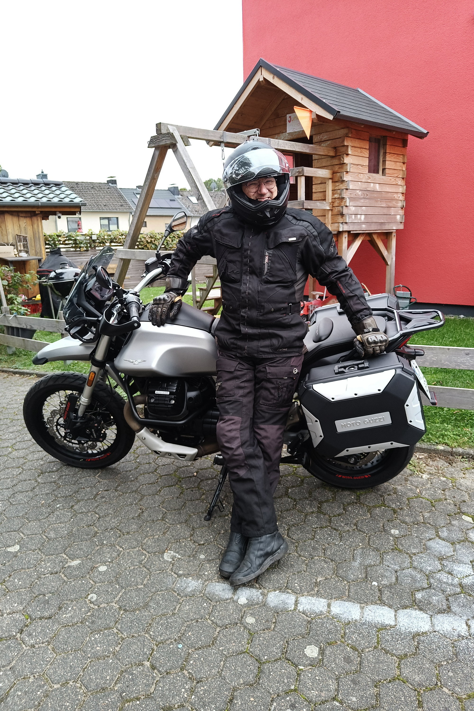 Zuerst war er noch skeptisch, ob er die richtige Entscheidung getroffen hat – aber schon an der Tanke in Solingen, wo wir das Mopped abgeholt haben, grinste er über’s ganze Gesicht …